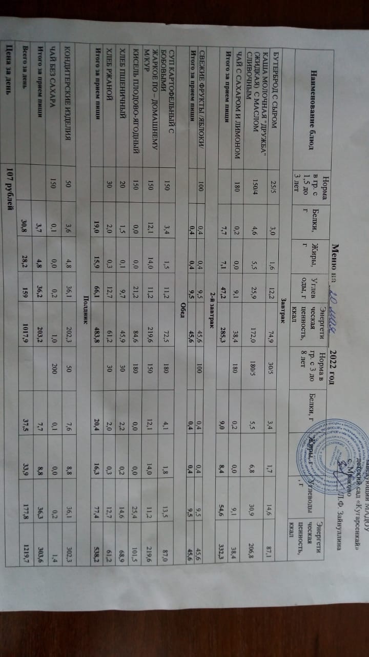 (Меню на 20 мая)