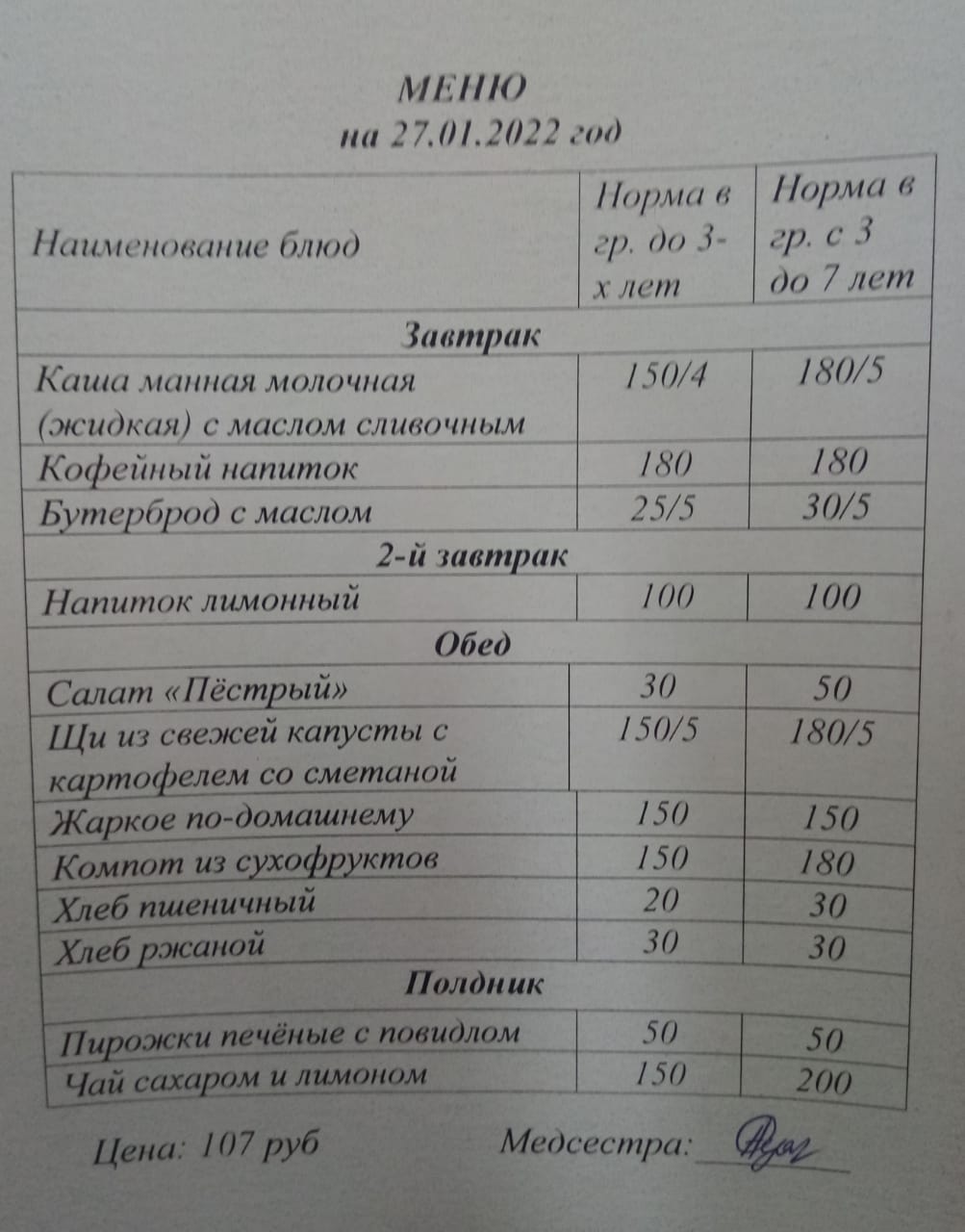 (Меню на 27 января 2 завтрак)