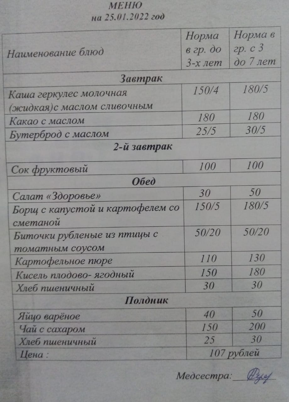 (Меню на 25 января)