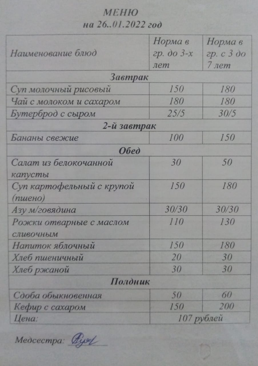 (Меню на 26 января)